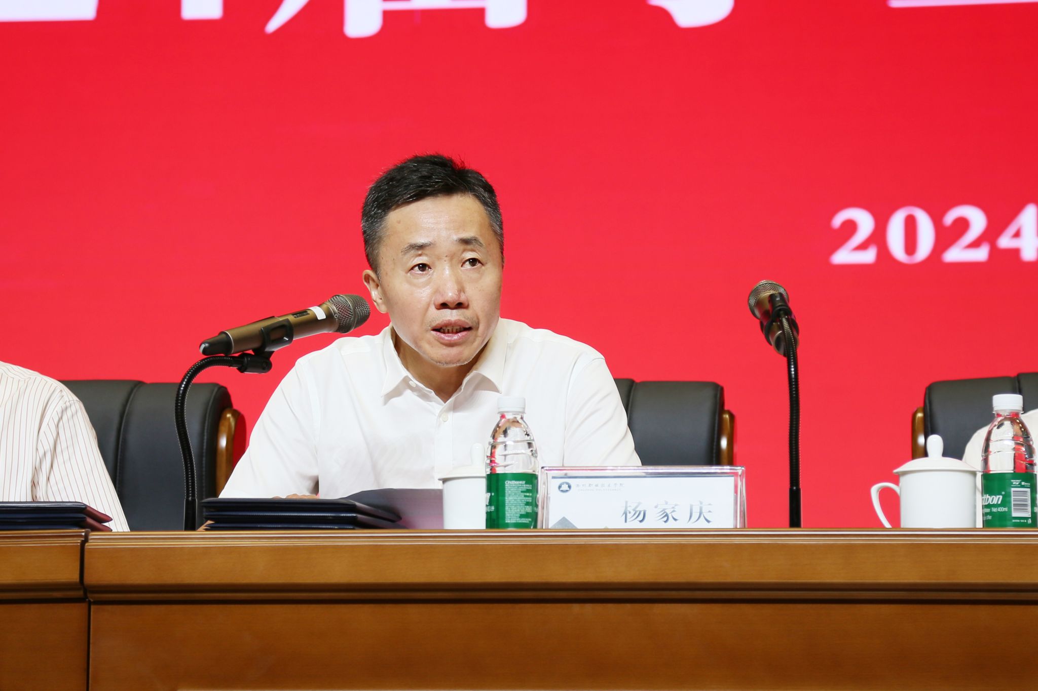 杨家庆在主持典礼时,希望2024届毕业生永远珍藏大学生活的难忘时光,珍惜彼此结下的深情厚谊,用青春的激情、执着的信念、过硬的本领,开创更加绚丽的人生。