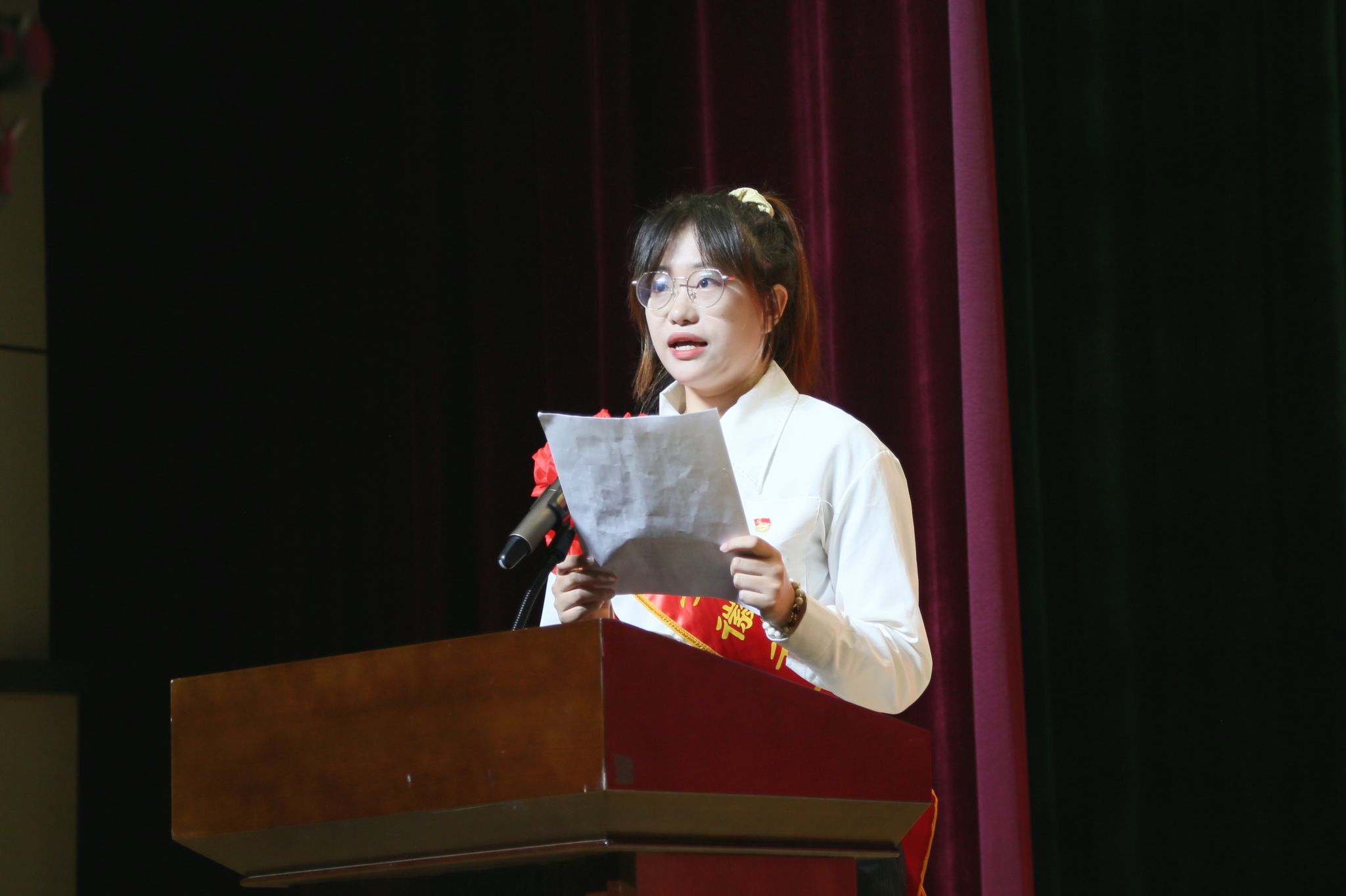 教师代表商学院辅导员王晶晶老师以“青春永葆热爱,梦想扬帆起航”为题发言,希望毕业生们以一颗坚毅赤诚之心展望未来,在人生的道路上不断前行、勇攀高峰!