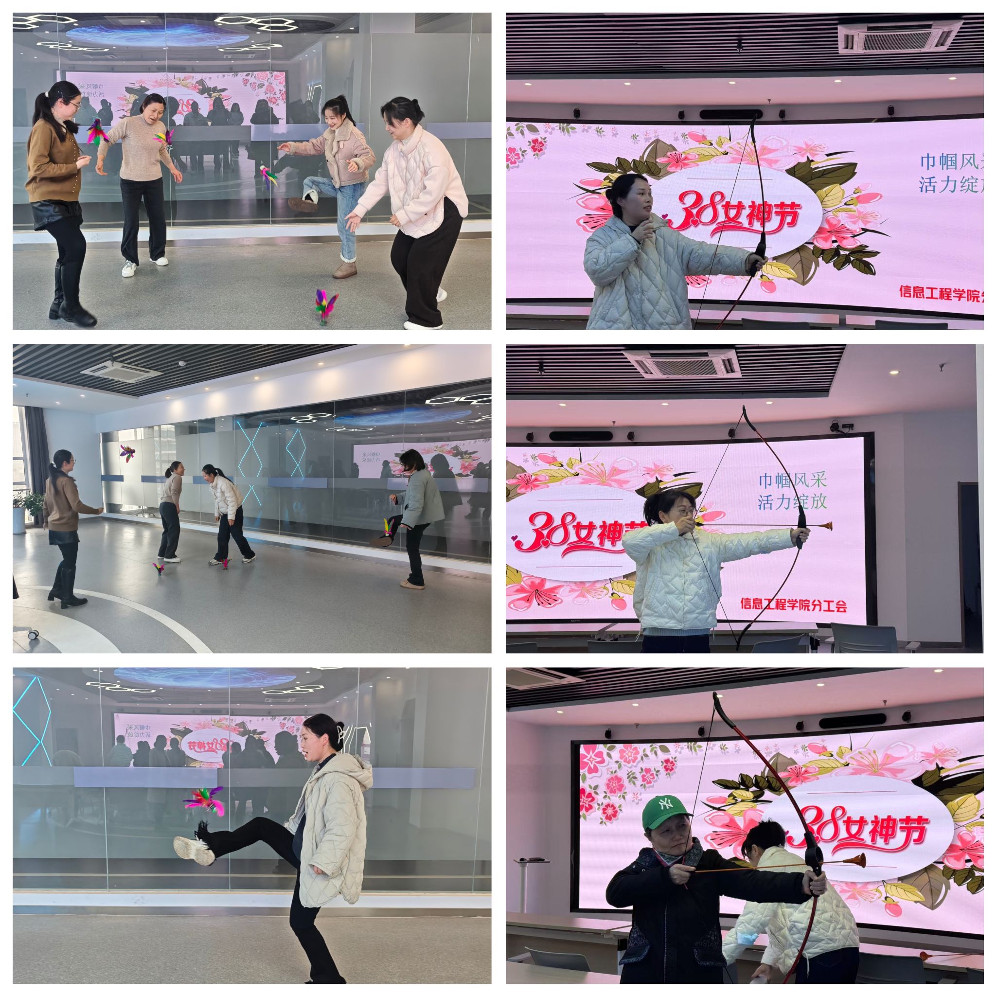 为庆祝第115个国际妇女节,增进女教师之间的友谊,提高身体素质,愉悦身心,创造健康活泼的工作氛围,信息工程学院分工会于3月12日组织了一场别开生面的趣味活动。本次活动设置两个项目:踢毽子和射箭,信息工程学院全体女教职工热情参与。
