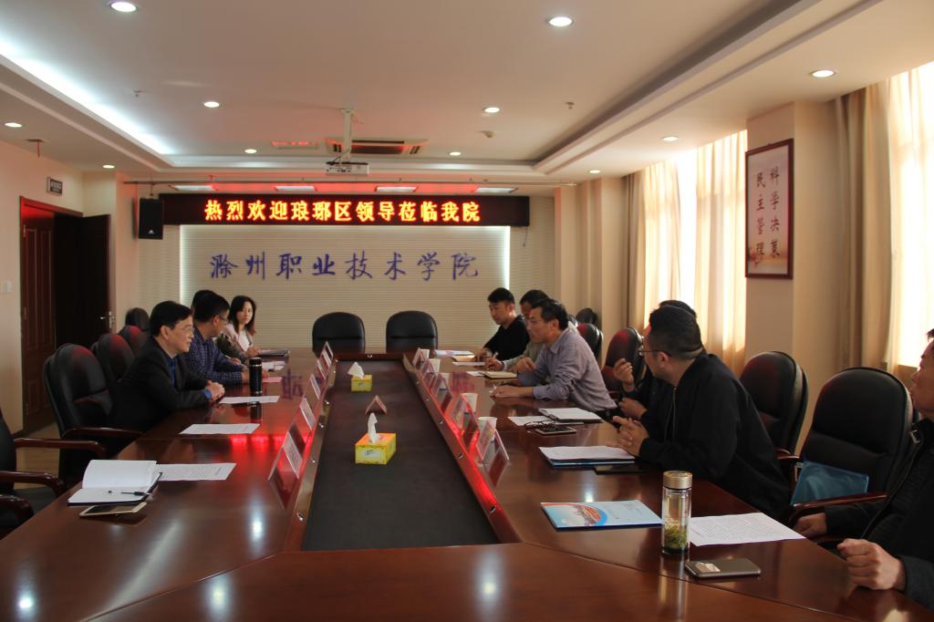 4月2日下午,琅琊区委书记余成林,琅琊区政府副区长赵洪江一行到beat365中国唯一官方网站考察交流。学院党委副书记、院长李柱梁,院党委委员、院长助理、职教集团秘书长穆松出席会议,招生就业处相关同志参加了会议。