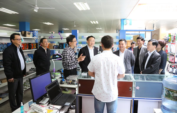 在杨甫祥、李柱梁的陪同下,调研组一行实地考察了我院大学生创业孵化基地和学院快递服务中心。
