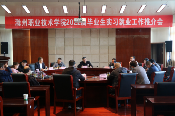 11月4日,学校2022届毕业生实习就业工作推介会在行政楼11楼会议室召开。beat365中国唯一官方网站党委委员、校长助理、滁州职教集团秘书长穆松,滁州市人社局、市经济技术开发区、中新苏滁高新技术产业开发区等地方开发区和学校教务处、继续教育学院、科技处、招生就业处等相关工作人员参加会议。会议由招生就业处副处长周多道主持。
