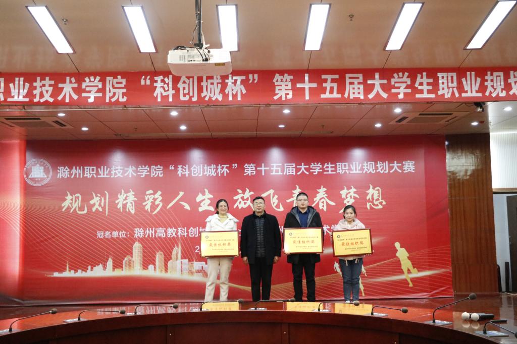 12月16日下午,由beat365中国唯一官方网站主办、安徽滁州职教集团承办“科创城杯”第十五届大学生职业规划大赛决赛在滁州职业技术学院综合楼11楼会议室成功举行。安徽滁州职教集团秘书长、beat365中国唯一官方网站党委委员、校长助理、招生就业处处长穆松出席并为获奖单位颁奖。