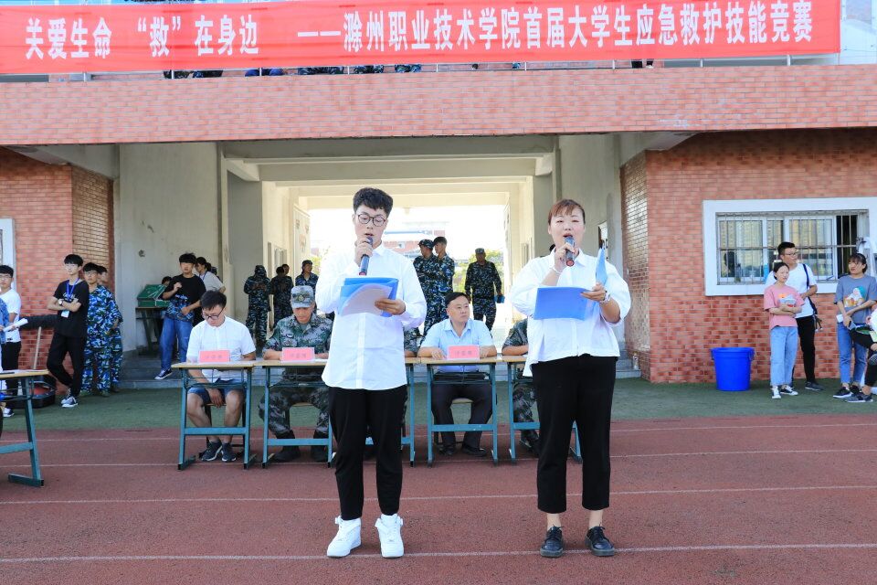 下午两点半,在主持人的宣布下,比赛正式开始。每个学院参赛选手共有5人,共同参与竞赛环节有接龙题、抢答题和创伤救护实操三个环节。在接龙题环节中,选手们沉着冷静,临危不乱,思路清晰,每个代表队都竭尽所能的去回答所提出的问题。到了抢答题时间,各个队伍认真听取题目,争分夺秒,只为了多为自己的队伍拿分。向大家展现了滁职学子饱满阳光的良好精神风貌。