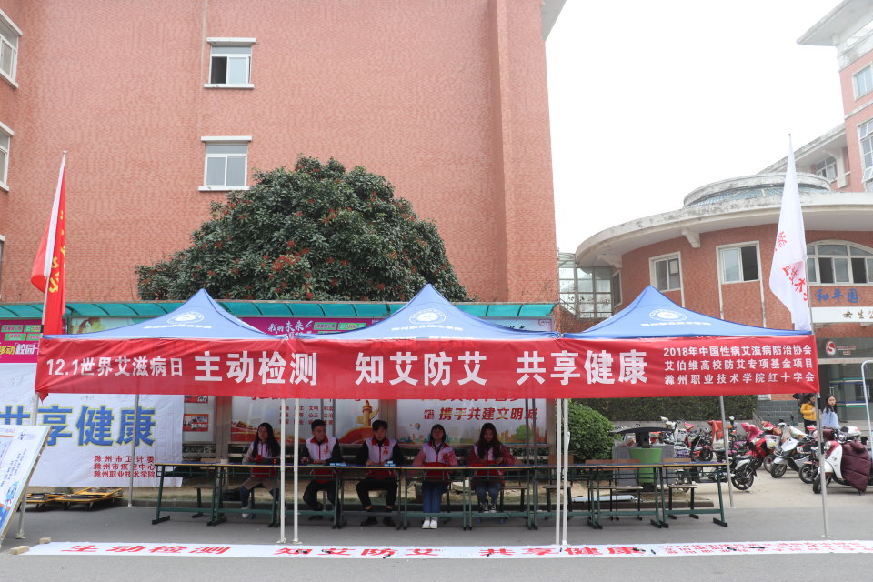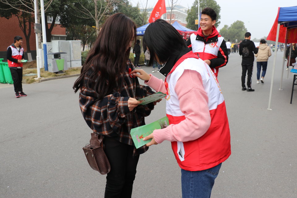 爱心呵护生命,行动抵御艾滋。为了使更多的人了解艾滋病,正视艾滋病,更好地遏制艾滋病的传播和蔓延。2018年12月1日,365官网红十字会成员在校内女生宿舍一号楼下开展了以“主动检测 知艾防艾 共享健康”为主题的预防艾滋病知识宣传活动。