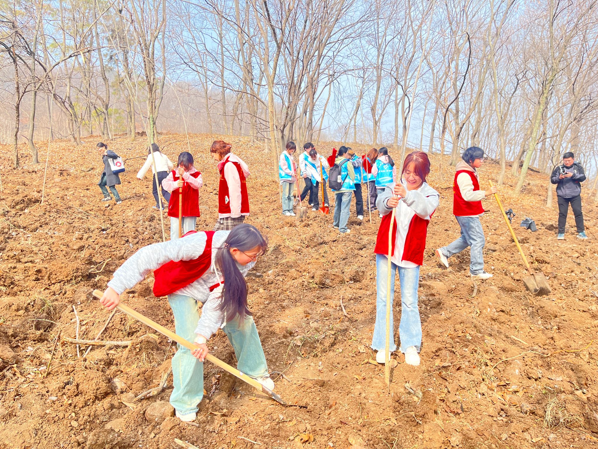 活动中,师生们热情高涨,分工合作,有的挥锹挖坑,有的扶树培土,还有的提桶浇水,现场一片忙碌而有序的景象。在大家的共同努力下,一棵棵树苗被稳稳地栽种在土壤中,为这片土地增添了新的生机与活力。