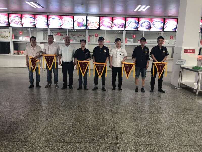 5月13日下午,学校食堂二楼经营商家徽王餐饮集团在食堂二楼举行2019年4月份工作总结暨表彰大会,共有6家窗口得到美味实惠标兵、口味丰富标兵、卫生标兵、新星标兵等表彰。