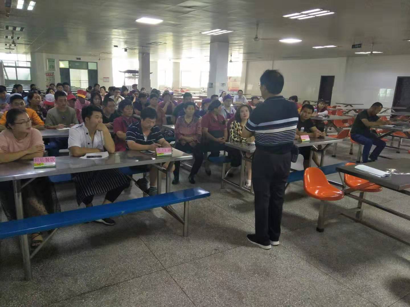 2019年8月31日下午,后勤公司在食堂三楼举行新学期食堂从业人员食品安全和消防安全知识培训会,此次培训会由后勤公司餐饮中心负责人胡永光老师主讲,各餐饮公司经理、厨师长、窗口负责人等80余人参加了此次培训会。