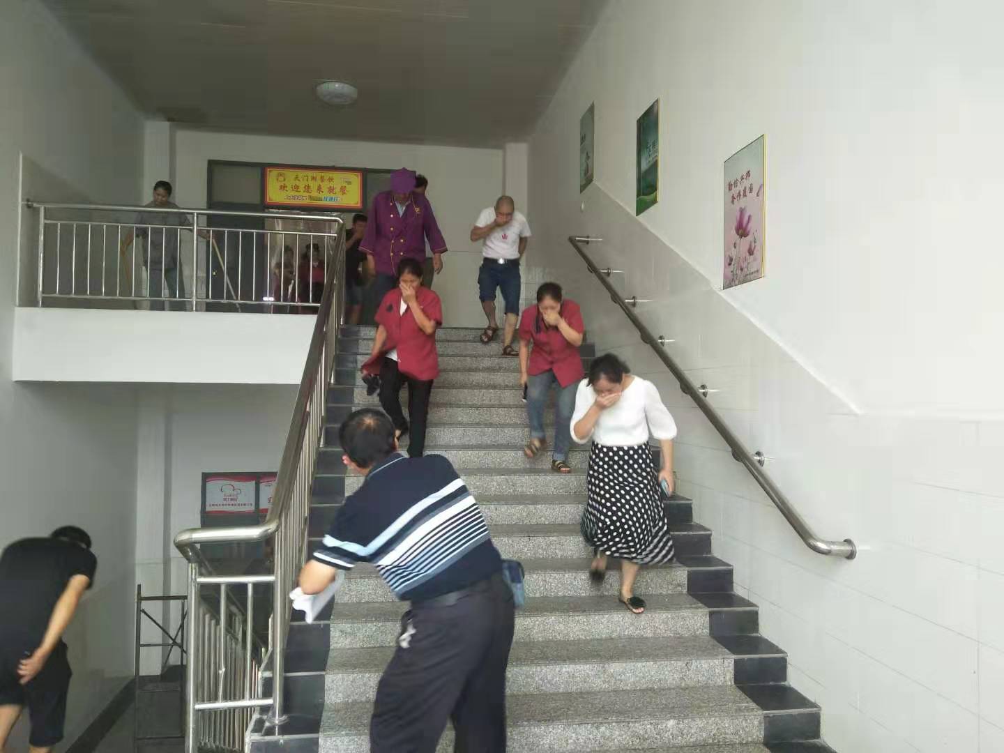 培训会中胡老师先对上学期学校餐饮服务工作做了总结,并提出本学期食堂餐饮工作的重点和要求,强调了食堂餐饮工作中食品安全和消防安全的重要性,要求所有从业人员要遵守学校各项规章制度,高标准的做好餐饮服务工作。接着胡老师为大家详细地讲解了食品安全的管理概要、从业人员、场所设施、过程控制、中毒预防五个方面的内容。最后胡老师从检查消除隐患能力、扑救初级火灾能力、组织疏散逃生能力、消防宣传教育能力四个消防安全能力入手,着重讲解了食堂餐饮从业人员应学习、掌握的消防安全知识并现场讲解了灭火器的使用方法。培训会结束后,在胡老师指导下所有参训人员进行了现场逃生演练。