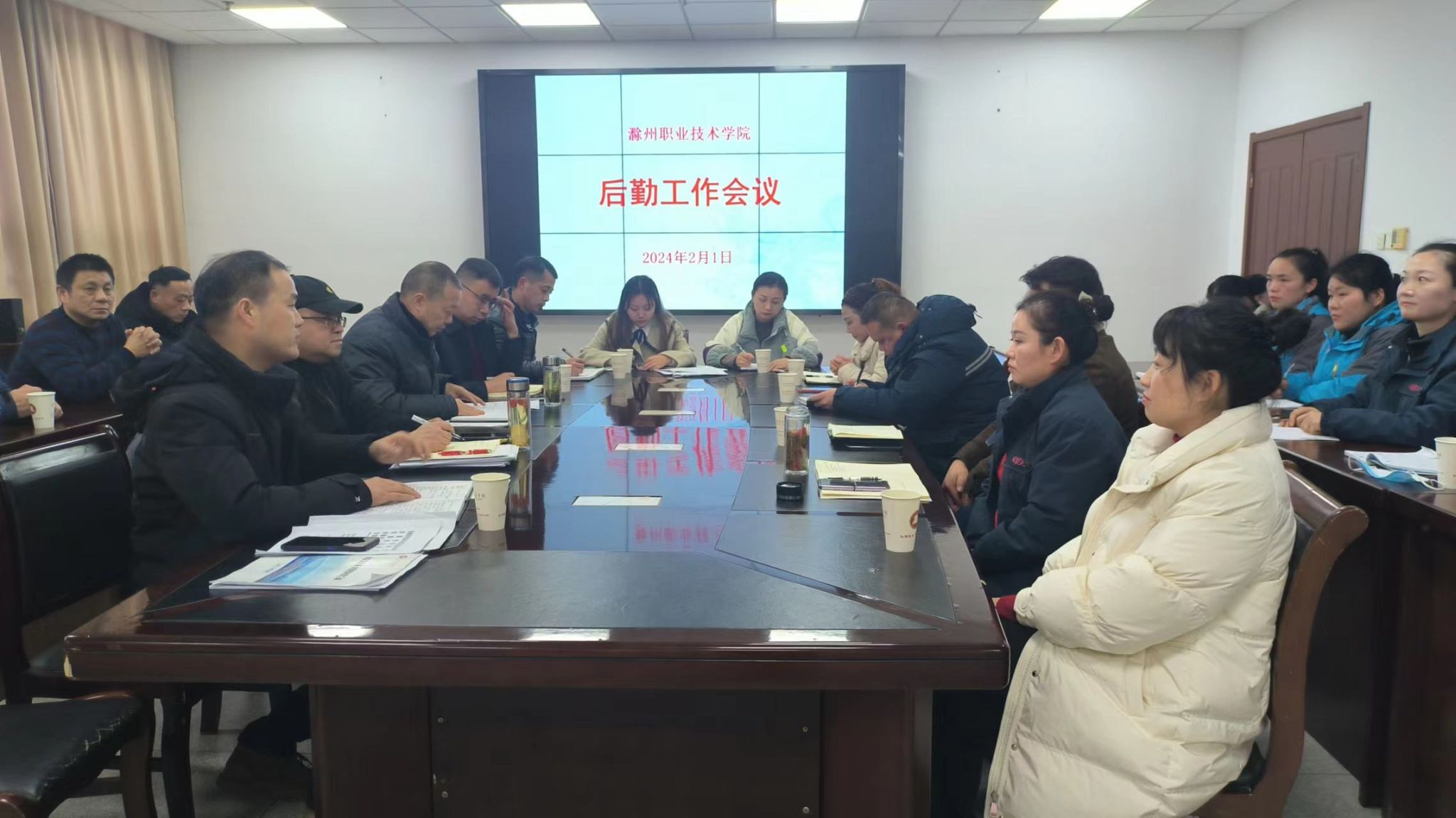 为全面提升后勤服务保障水平和能力,更好的为学校事业发展提供坚实的后勤保障,2024年2月1日,学校召开后勤服务企业工作会议,校党委委员、副校长胡凼出席会议并讲话,安全保卫处处长吴杰、后勤服务中心主任顾宏才、副主任陆凤林、各科室管理人员及校内各服务企业负责人参加了会议。会议由陆凤林主持。