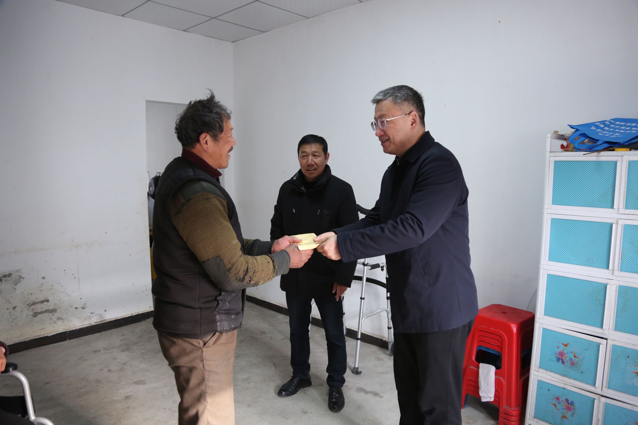 在邓坝村,曹付忠走进监测户家中,详细询问了村民的生活状况和身体情况,认真倾听他们的需求与意见,鼓励他们鼓足勇气、振奋精神,依托党和政府的惠民政策,积极面对生活。