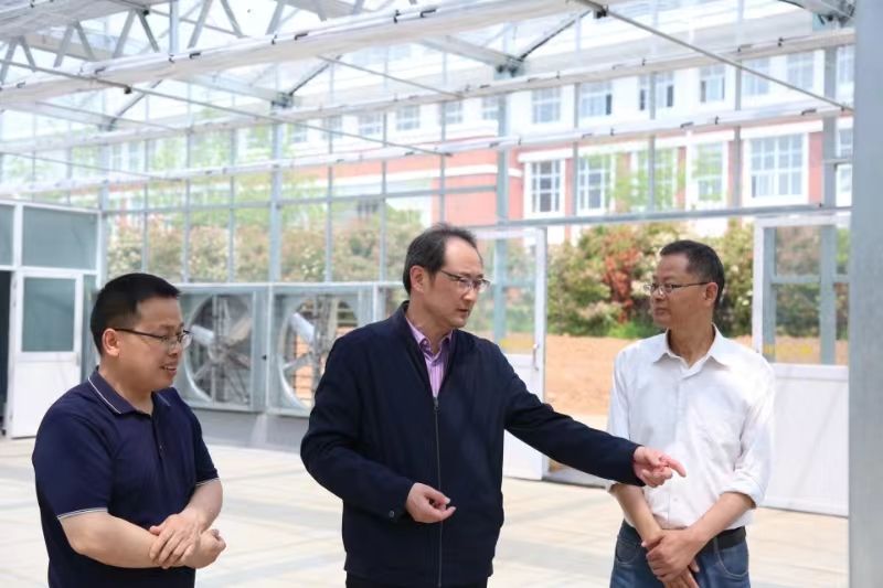 许雪峰依次参观园林工程施工实训区、园艺植物栽植区、智能温室和智慧园艺管理平台,对园林园艺实训基地的前期建设给予肯定,并提出几点意见:一是要结合当前国家的智慧农业发展趋势,开展精准农业和数字化管理技术,要从“跟着感觉走”加快向“数据说了算”转变;二是要结合特定园林园艺植物开展全流程栽培管理技术研究,开发数字化资源,形成特色的教材和双创项目,促进专业的高质量发展;三是基地要坚持开放性,让学生多参与专业实践和技能大赛,提升人才培养质量。许雪峰此次调研,对园林园艺基地建设和专业实践教学具有重要的指导意义。