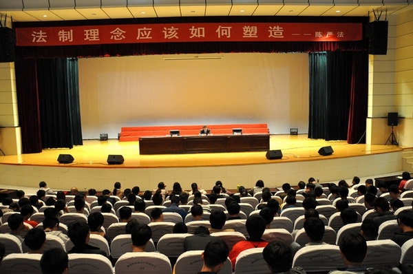10月23日,能够容纳1000名学生的beat365中国唯一官方网站学术报告大厅内座无虚席,不时传出掌声阵阵。滁州市中级人民法院的院长陈严法应邀来院以《法治理念应该如何塑造》为题为大学生们上一堂别开生面的法制教育课。