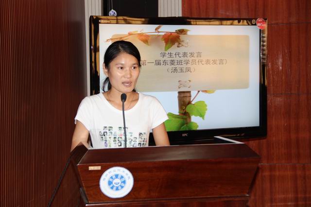 典礼上,穆松介绍了学院与广东新宝电器股份有限公司合作的情况。自2010年东菱公司滁州分公司破土动工的那一刻起,东菱公司就与学院签订了订单培养协议,双方合作组建了第一届“东菱班”,共50人,目前他们大多走上关键技术岗位和基层管理岗位。其中第一届“东菱班”代表汤玉凤在开班典礼上与新一届学员分享了这两年的工作经历和感受。新一届“东菱班”的吴其超代表全班学员发言,并进行了宣誓。