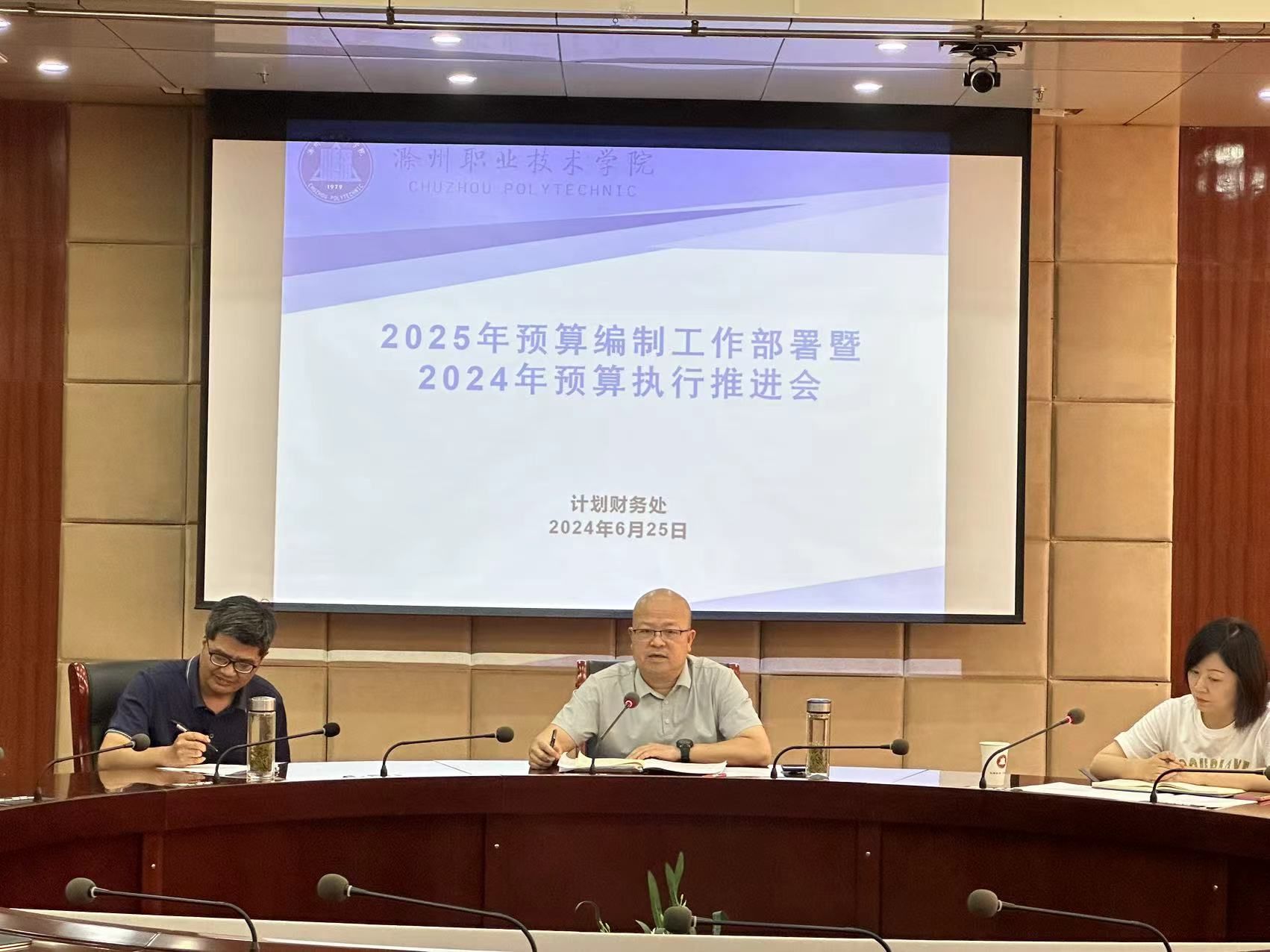 6月25日下午,365官网在综合楼11楼会议室召开2025年预算编制工作部署暨2024年预算执行推进会议。校党委委员、副校长胡凼出席会议并讲话,各教学院部、各部门主要负责人及预算编制人员参加了会议。会议由计划财务处处长王蓓蓓主持。