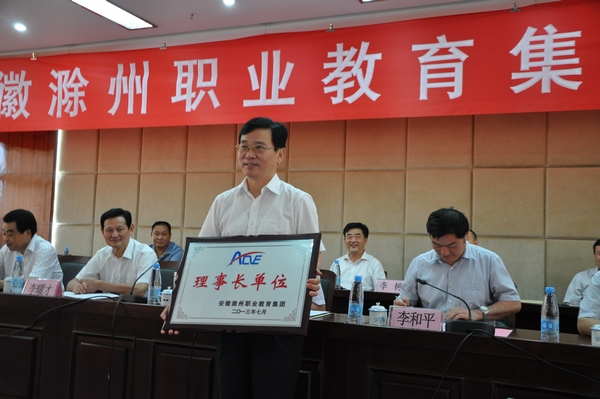 会议听取了关于职教集团筹建工作的情况汇报,讨论通过了《滁州职业教育集团章程》,选举产生了职教集团理事长单位、副理事长单位、秘书长及副秘书长,宣读了省教育厅关于成立安徽滁州职业教育集团的批复,市委书记江山和省教育厅副厅长李和平共同为“滁州职业教育集团”成立揭牌。