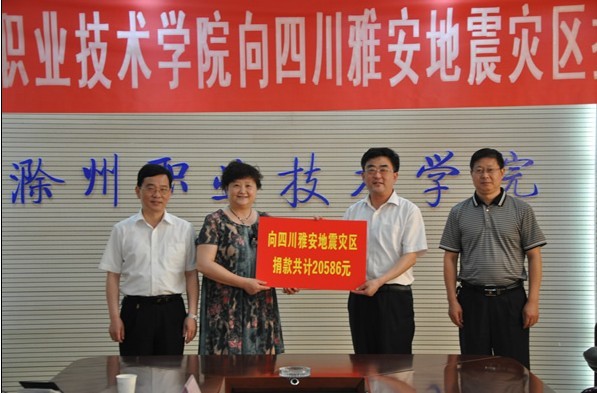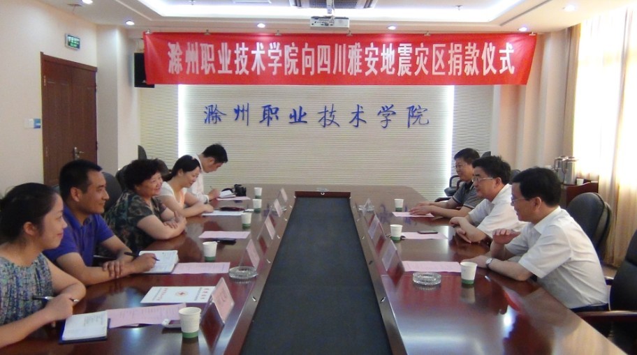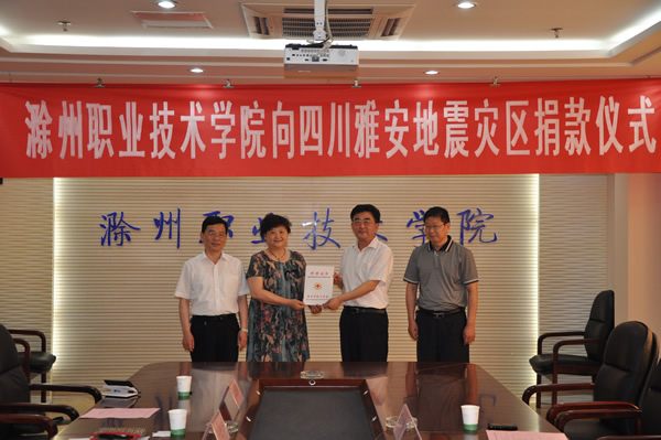 6月20日下午,beat365中国唯一官方网站向四川雅安地区捐款仪式在学院综合楼904会议室举行。学院党委书记沈中林、院长李柱梁、滁州市红十字会常务副会长史庆荣、学院团委书记、院红十字会秘书长王蓓蓓及相关工作人员出席仪式。捐款仪式由学院副院长、院红十字会会长吴大明主持。