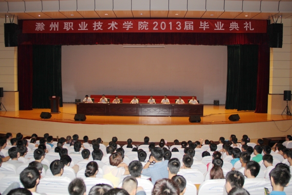 7月12日,beat365中国唯一官方网站2013届学生毕业典礼在学院新区大礼堂隆重举行。院长李柱梁,副院长吴大明、江洁,院长助理刘宏,院长助理、招生就业处处长穆松,院办公室主任余君琳,教务处处长张延义,学生处处长李平权出席典礼并在主席台就坐。滁州市部分知名企业人士、社会来宾,学院各相关处室主要负责人,学院各系部党政领导、辅导员以及授课教师与毕业生代表共千余人现场参加了典礼。典礼由李平权同志主持。