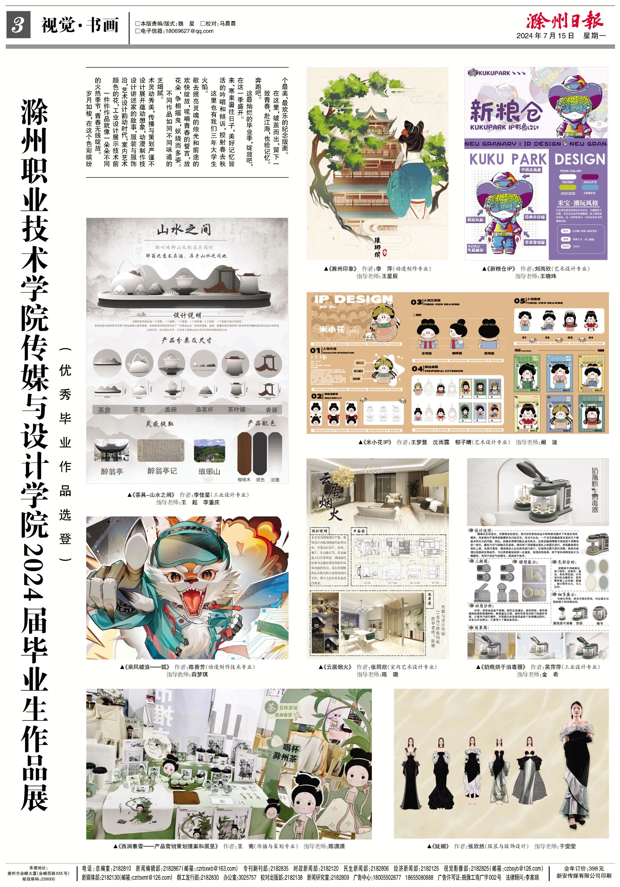 《滁州日报》选登365官网传媒与设计学院2024届毕业生作品