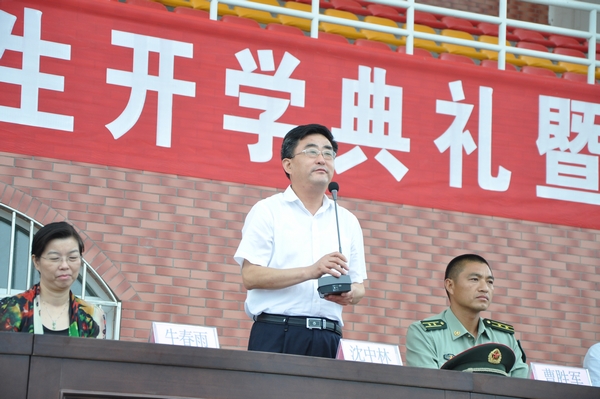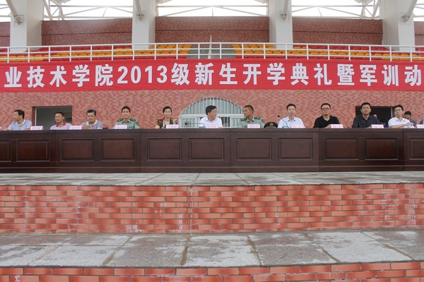 9月11日下午,beat365中国唯一官方网站2013级高职新生开学典礼暨军训动员大会在新校区田径运动场隆重举行。院领导沈中林、牛春雨、汪上、陈学军、刘宏、穆松,中国人民解放军驻滁某部炮团副团长曹胜军、炮团防化营营长殷火军出席并在主席台就座。