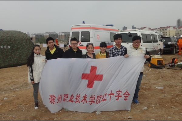4月18号下午,由滁州市地震局承办皖北片地震应急救护培训演练活动。beat365中国唯一官方网站红十字会应急救护小分队的同学们作为滁州市红十字医疗救护队的成员参加了此次活动。