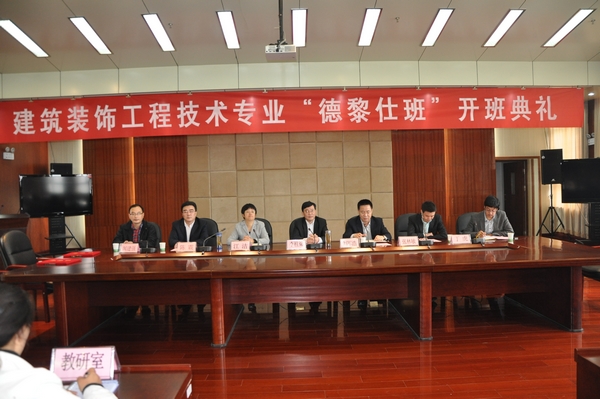 院长李柱梁亲切地称呼从事建筑装饰工程技术专业的同学未来是“家居环境的美容师”。李柱梁强调职业教育要加强与企业合作,积极探索全方位合作办学模式,以此适应职业岗位技能发展的需求。李院长要求艺术设计系要以开设“德黎仕班”为契机,更好地把理论教学与实践教学结合起来,使教学质量稳步提高;同时李院长还对“德黎仕班”的学生提出了更高的要求和期望,他说“同学们只要努力,未来都大有可为。祝愿同学们学业有成”。