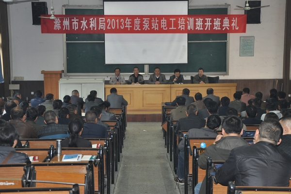 2013年11月4日,市水利局泵站电工第一期培训班在beat365中国唯一官方网站举行开班典礼。院成教部负责同志晋太洋及水利局有关负责同志参加开班典礼,来自各县(市、区)水利(务)局、城西水库和沙河集水库的96名基层泵站技术人员,参加为期7天的脱产学习。