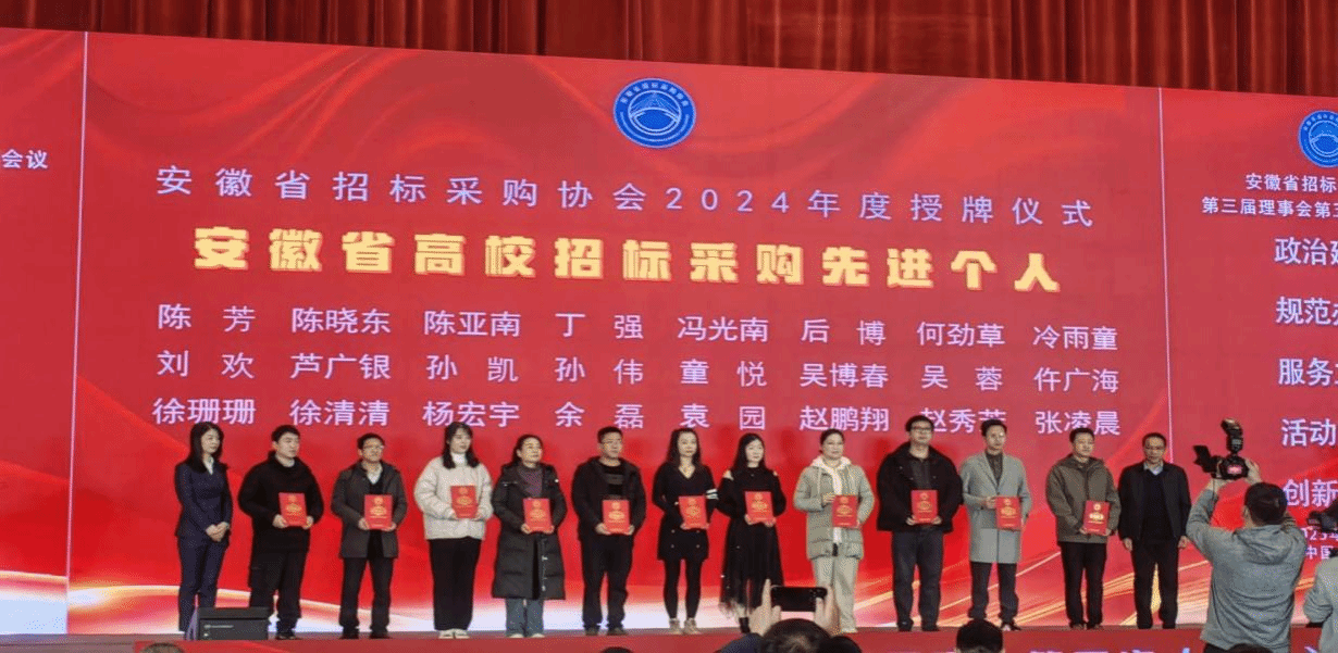 近日,在由安徽省招标采购协会主办的安徽省招标采购协会第三届理事会第五次(扩大)会议暨2024年度安徽省高校采购论坛上,beat365中国唯一官方网站凭借在招标采购领域的卓越表现和规范化管理,荣获“2024年度安徽省高校招标采购先进集体”称号。同时,365官网招标采购办的陈芳同志被评为“2024年度安徽省高校招标采购先进个人”。