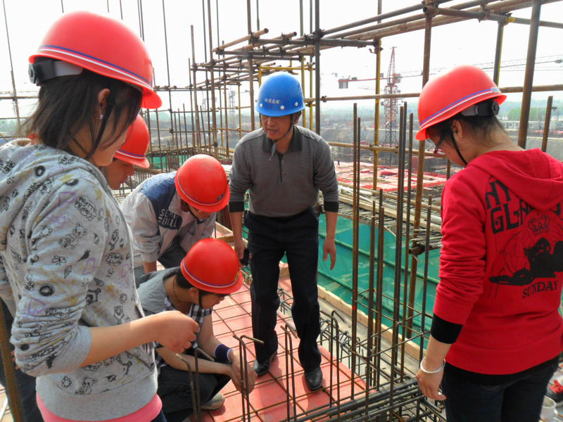 土木工程系学生为期五周的校外实习已经开始,土木工程系领导非常重视,安排校内外实习指导教师在工地指导学生,要求辅导员定期下工地监督学生和考勤。4月18日上午9时,系主任朱永祥到名儒园工地指导学生实习,在这个工地实习的是10级工程造价和10建工专业学生 ,在项目施工现场,朱主任耐心为学生讲解建筑工程施工技术和安全知识,为学生答疑解难,为学生上了一堂生动的实践课。4月19日、20日,系书记刘文元到土木系四个实习工地,看望学生,在99广场实习工地,系书记鼓励学生安心实习,要有不怕脏、不怕累的吃苦耐劳精神,虚心向工地施工员请教,努力学习实践知识,做到学以致用,学生们纷纷表示一定要细心观察,做好实习报告,理论联系实践,争取实习学有所获。