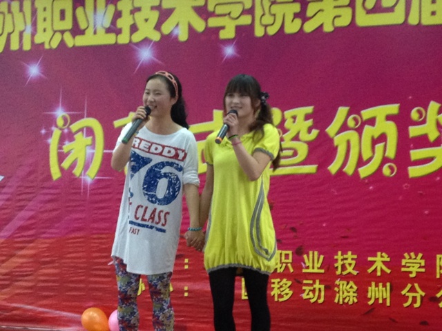图为我系的才艺女生陈程(右)在闭幕式晚会上演唱歌曲