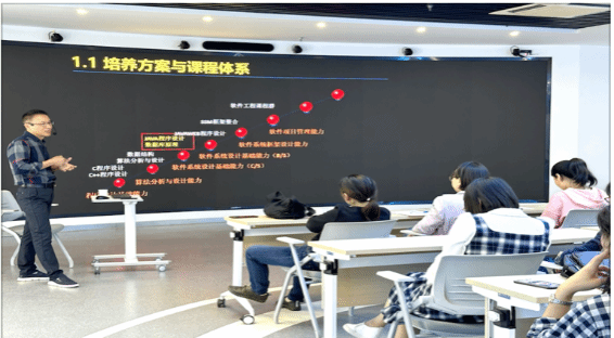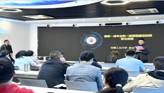 以落实学校“大师进校园 名师进课堂”活动为契机,强化师资队伍建设,推动专业、课程建设高质量发展。2023年10月11日下午,信息工程学院在虚拟现实实验室举办了一场“大师进校园 名师进讲堂”专题讲座。本次讲座特邀安徽工业大学陈业斌教授、硕士生导师来365官网讲学,主题为《国家一流专业及一流课程建设的探索与实践》。本次讲座由信息工程学院副院长邹军国主持,承担计算机相关课程、专业建设的近100名专、兼职教师参加聆听并进行了深入交流。