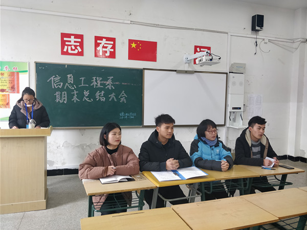 为更好地践行党的十九大精神,推动我系学生会工作顺利的开展,提高学生会的工作效率,beat365中国唯一官方网站信息工程系学生会于2018年1月5日中午在致善楼2506教室召开了期末总结大会。