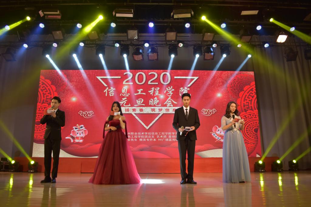 为了庆祝元旦佳节、丰富校园文化。12月22日晚,由信息工程学院主办的“飞扬青春,筑梦信息”大型元旦晚会在院大礼堂华丽上演。我院党委书记程洪斌、副书记杨阳、副院长邹军国等各位领导老师出席此次晚会并与我院学生会主席、团总支副书记及全体干事、各院学生带着对新一年的美好憧憬,共度良宵。