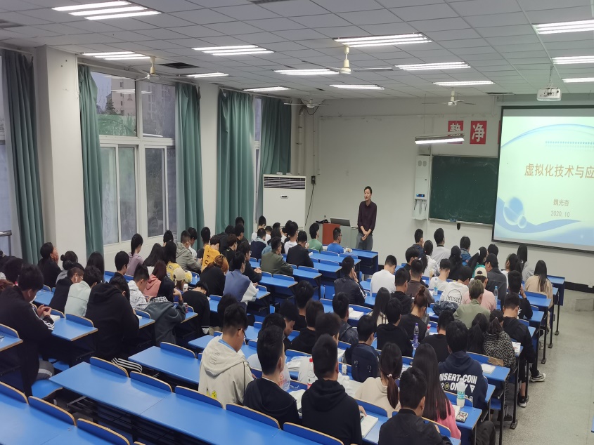 10月14日,信息工程学院魏光杏老师在北阶202教室,举办题为“虚拟化技术及应用”的讲座,信息工程学院计算机类相关专业约百余名学生听取了讲座。
