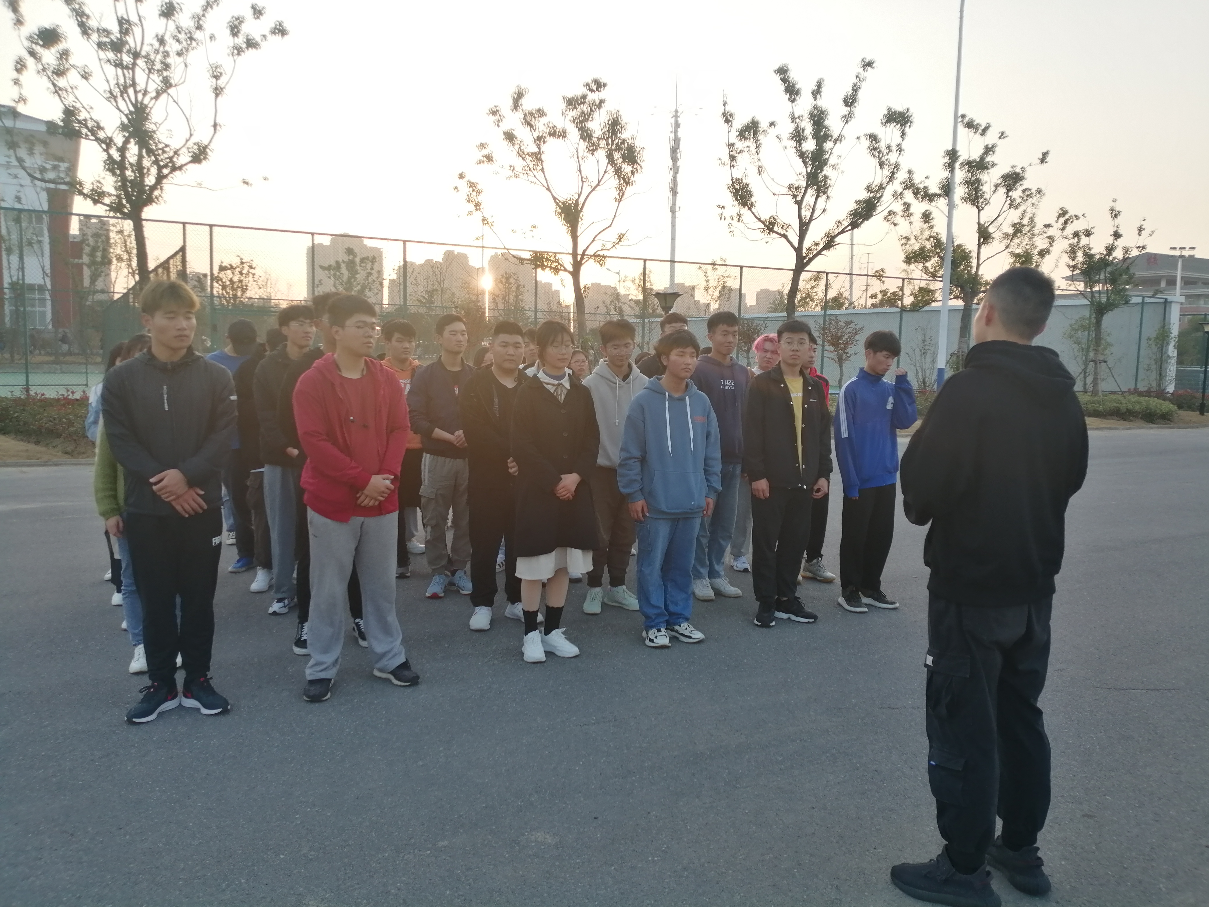 迎着朝阳由各部门部长带领团干们晨跑。在接近终点时,有些同学明显有体力不支的现象,但他们咬紧牙关继续前进,展现了良好品德和拼搏精神。晨跑结束后由副书记张清组织全体团干做按摩操,放松肌肉,不仅培养了各部门感情,更加深了团干间的团结意识。