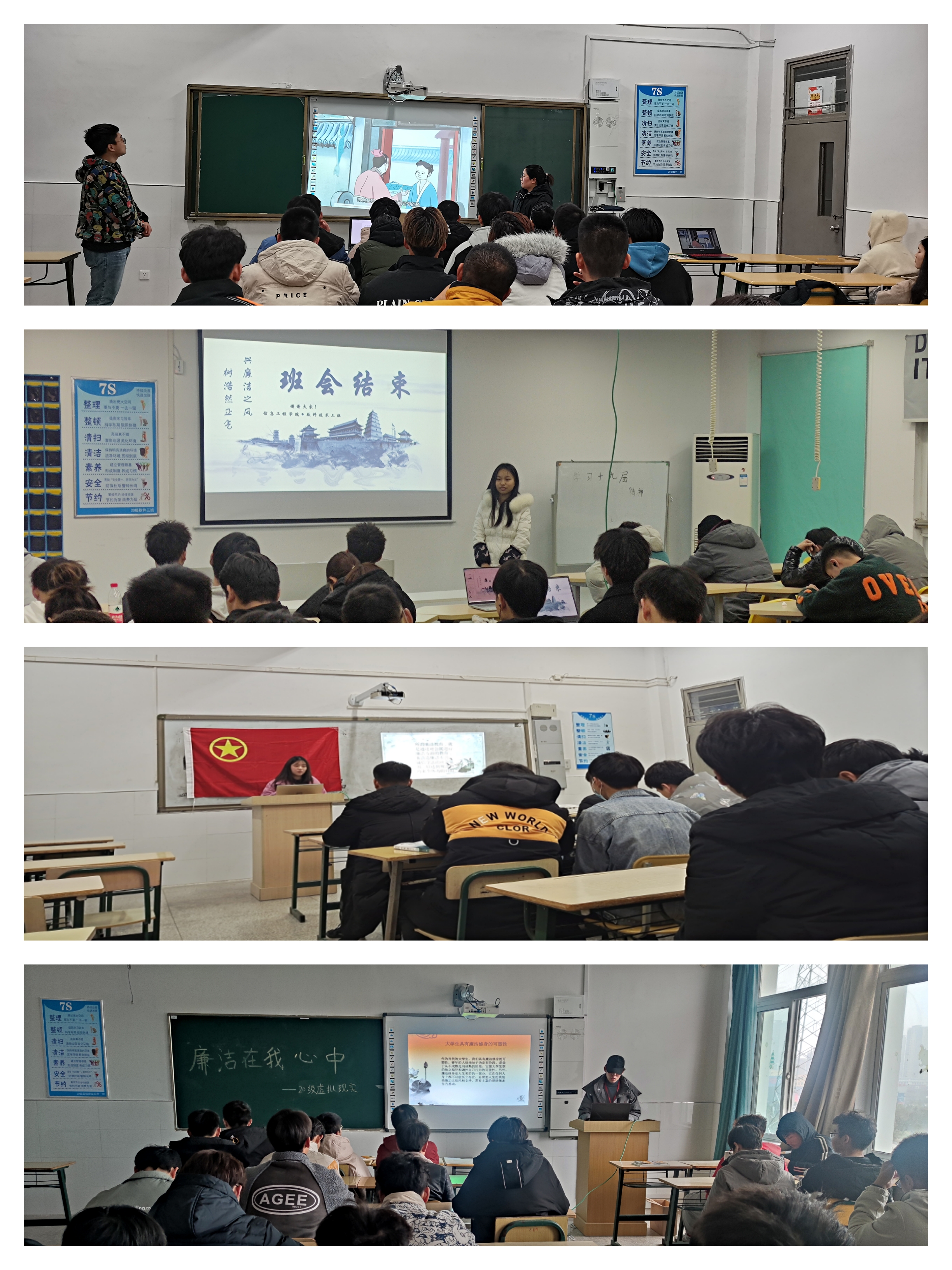 为了积极引导和培养大学生良好的思想道德品质和道德情操,进一步弘扬廉政文化,培养学生的廉洁意识,营造崇尚廉洁的浓厚氛围,构建文明和谐的校园文化,信息工程学院各班级于12月起通过主题班会的形式开展了形式多样的廉洁教育学习活动。
