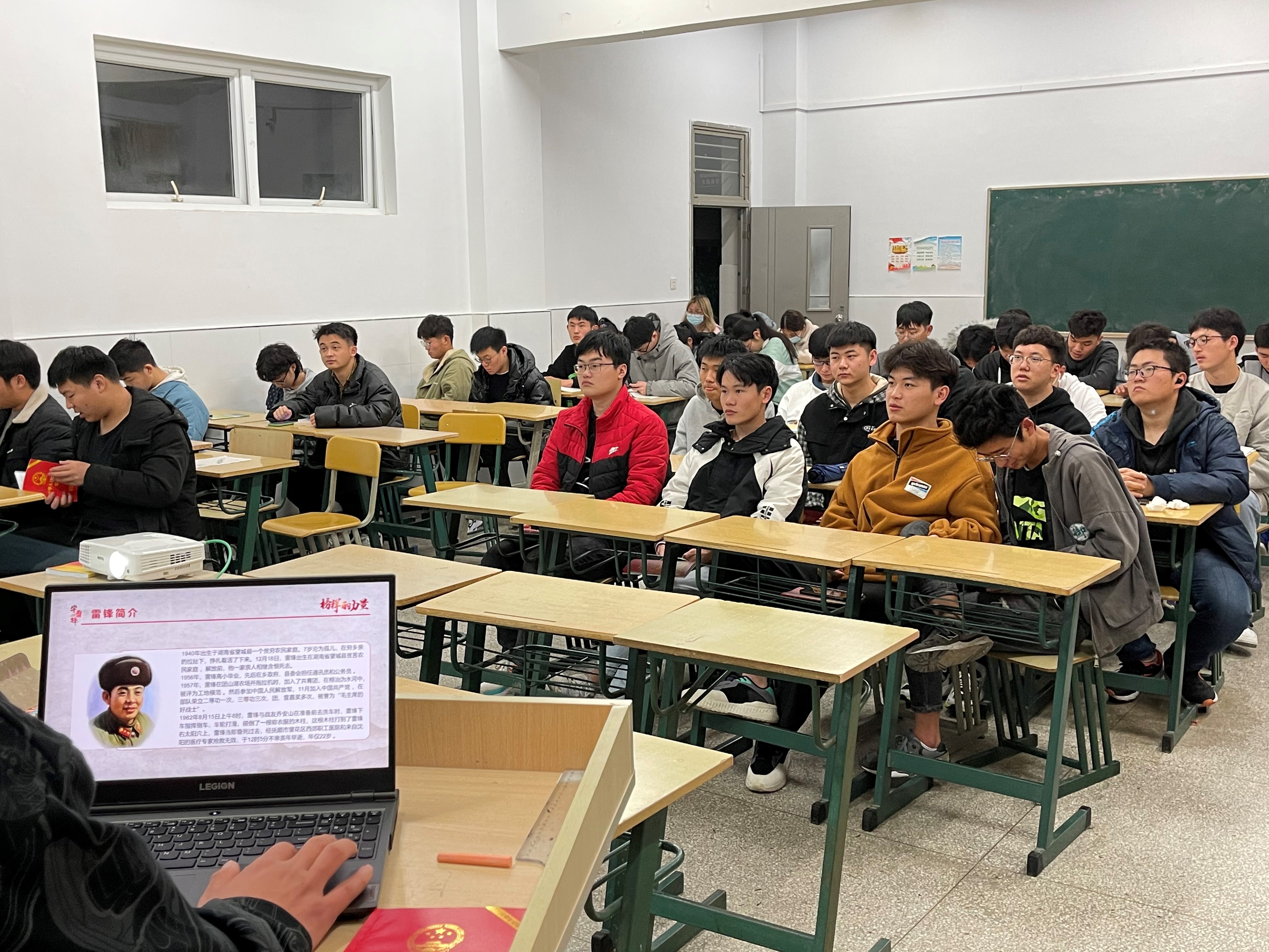 主题团日中,各团支部以“雷锋月”主题,通过PPT、电影等形式讲述雷锋的生平以及雷锋的真实故事,并带领班级同学讨论如何学习雷锋的“钉子精神”,重温着雷锋歌曲、诵读雷锋日记,积极学习和弘扬雷锋热爱党、热爱祖国、热爱社会主义的崇高理想和坚定信念。同学也纷纷表示要向雷锋同志学习,助人为乐,乐于奉献。