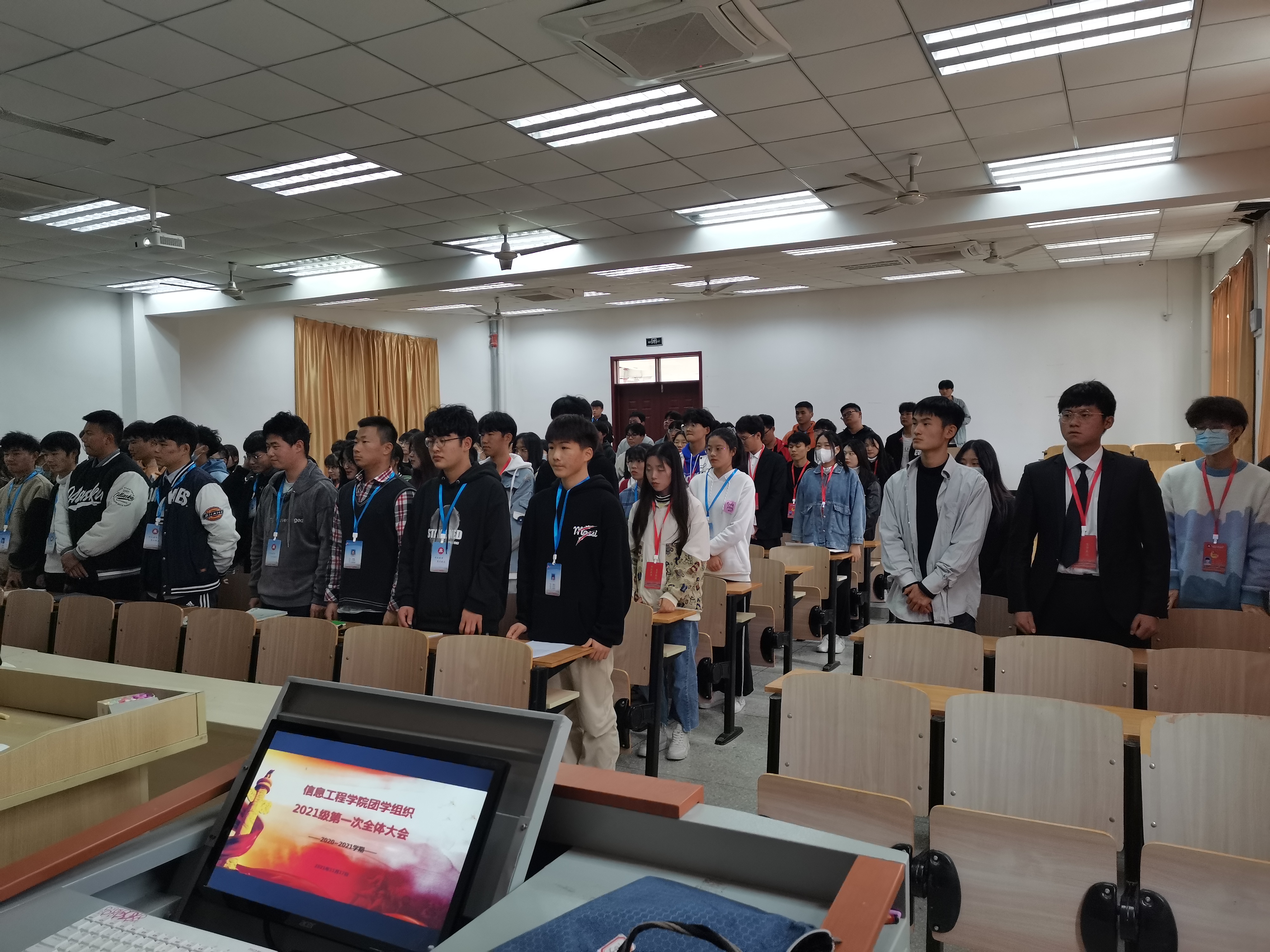 为保证我院本学期团学组织各项工作的稳步推进。11月17日,信息工程学院团学组织在南阶103召开了2021-2022学年第一学期全体大会。信息工程学院团总支副书记、学生会主席团以及团学组织的全体成员出席本次大会。