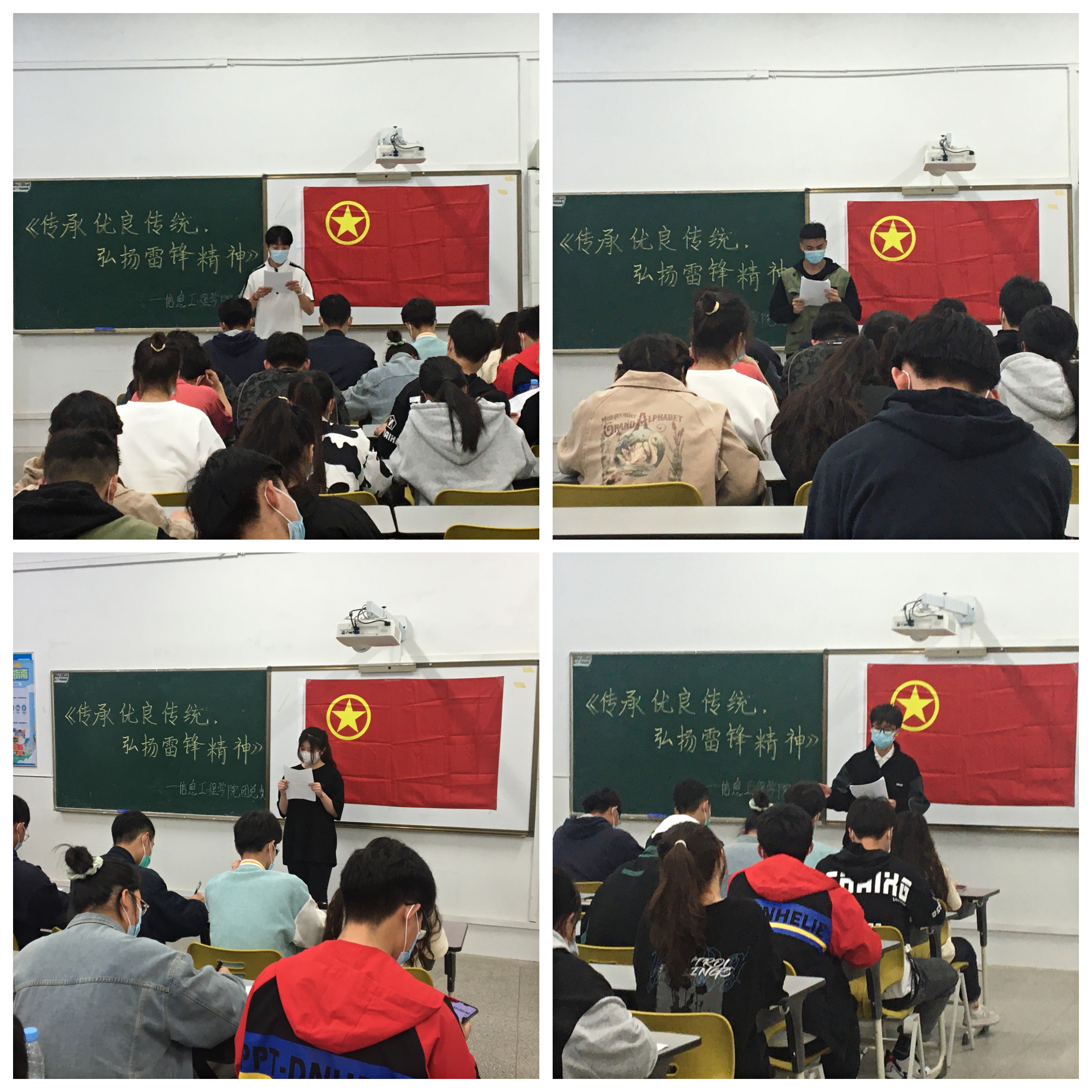 为深入开展学雷锋活动,大力弘扬雷锋精神,提高学生的思想道德素质,丰富学生的校园文化生活。3月30日下午,信息工程学院团总支在致善楼2506开展了以“传承优良传统,弘扬雷锋精神”为主题的演讲活动。经过团总支的精心策划和宣传,各班同学积极参与并认真准备,活动取得圆满成功。