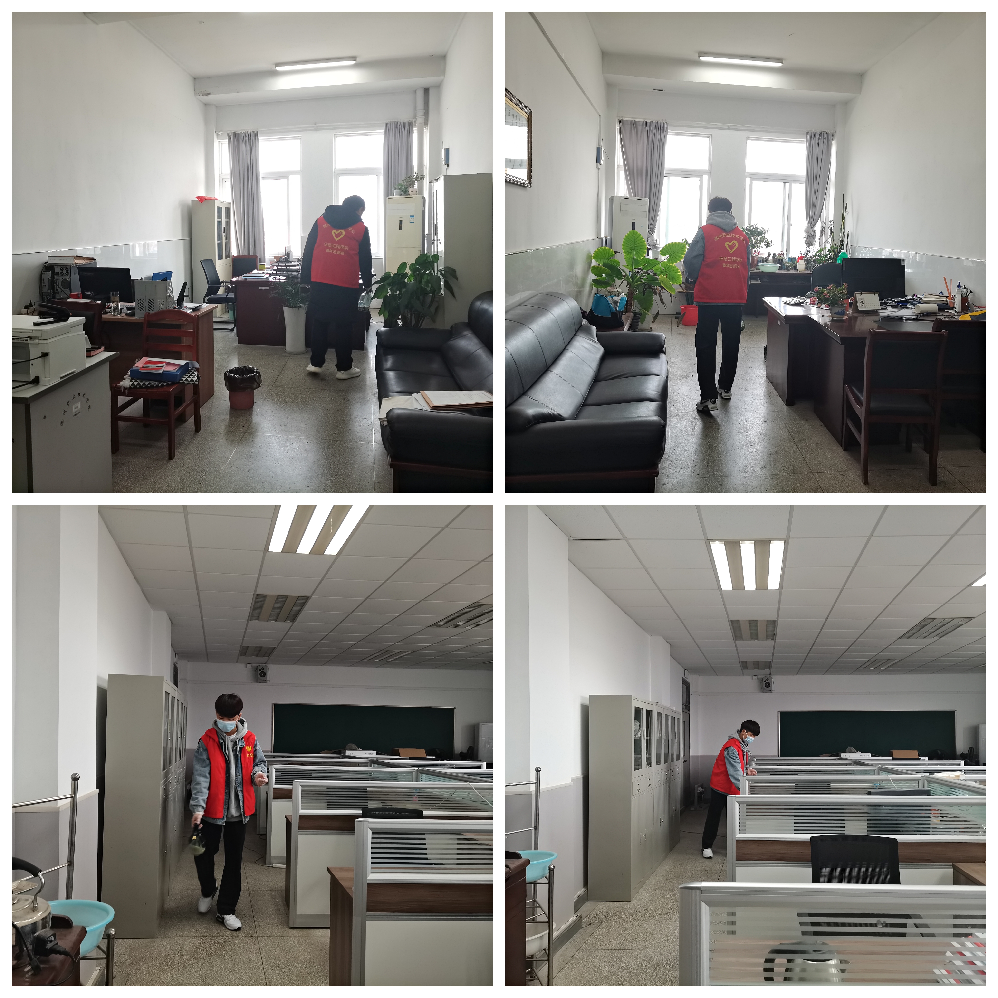 接下来,我院将继续把师生安全卫生工作放在首位,并针对本轮疫情做好专项定期消毒工作,给我院全体师生营造一个良好的工作学习环境。青年志愿者们也将在遵守学院疫情防控工作相关要求的基础上,在做好个人防护的前提下,继续积极配合并参与学院疫情防控,将工作做实、做细、做好,贡献青春力量!