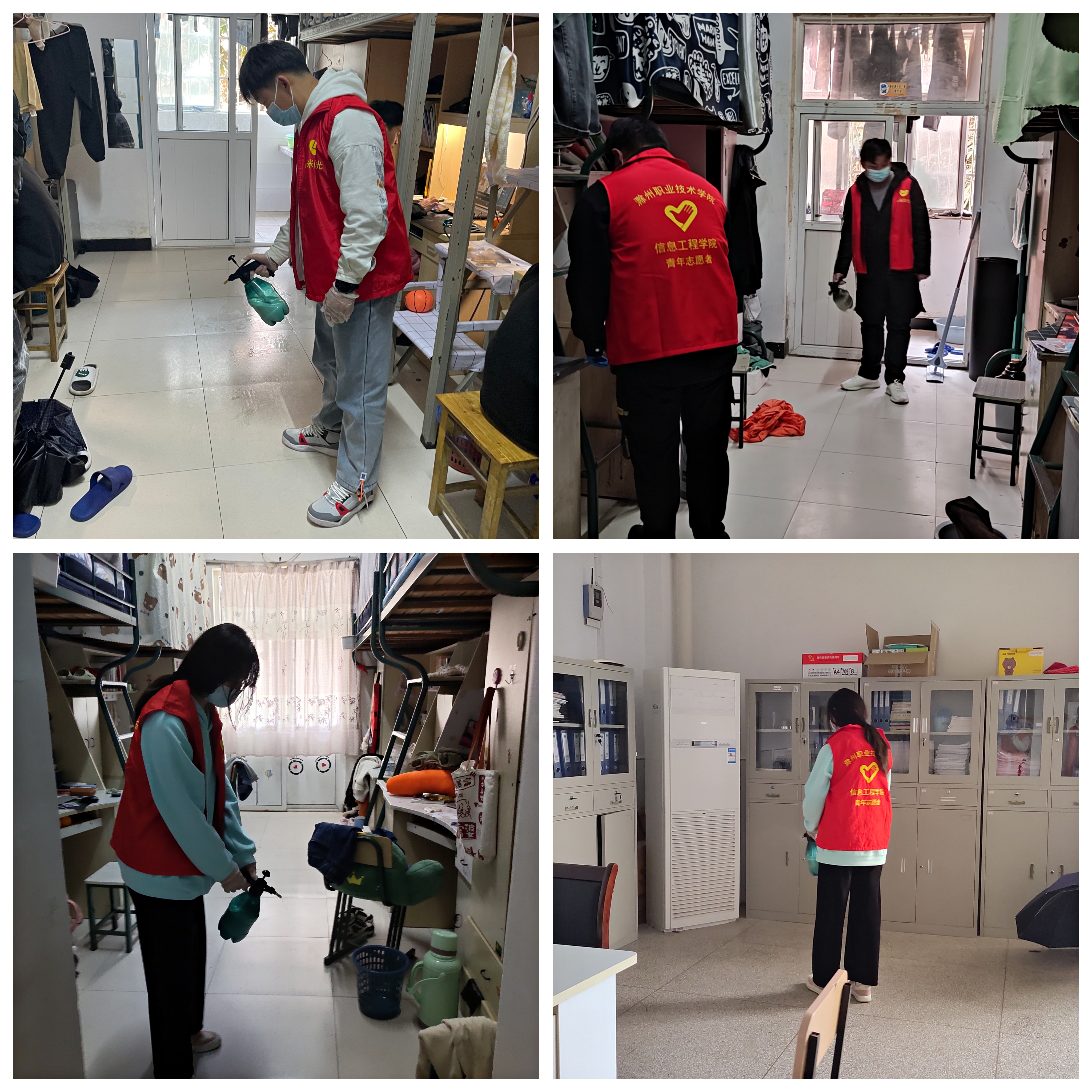 随后由我院学生干部组成的志愿者队伍进行了教室宿舍卫生大检查并同步开展了消杀工作。消杀过程中,学生志愿者在做好个人防护的前提下严格按照规定比例兑环保、高效、无毒消毒液,通力合作,对教室、办公室、学生宿舍等区域开展喷壶消毒消杀工作,以同劳动、共抗疫的爱卫同行方式,为巩固疫情防控成果贡献力所能及的力量。
