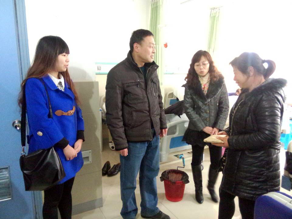 beat365中国唯一官方网站信息工程系13级软件班江坤同学于1月8日确诊为尿毒症,1月16日信息工程系党总支书记程洪斌,辅导员孟龙梅,团总支副书记金蕾,学生会副主席司德珊一起前往滁州市第一人民医院看望江坤同学,并将信息系师生共同筹集的13200元捐款交给其母亲。