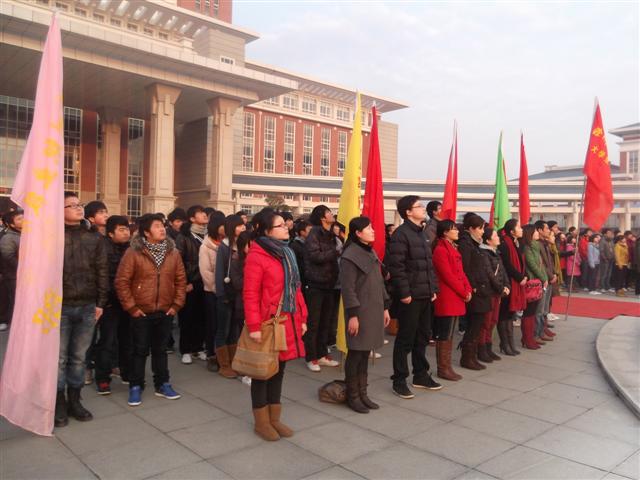 新学期伊始,信息系工程系团总支组织200余名学生代表参加了院团委组织的“走进新学期,迎接新挑战”主题升旗仪式。院团委王蓓蓓书记在升旗仪式现场作了重要讲话,希望和要求同学们确立目标,挑战责任;遵守纪律,做文明学生;端正思想,抵制不良风气的影响;珍惜时间,刻苦努力学习;注意安全,珍视生命;心中有爱,学会宽容。