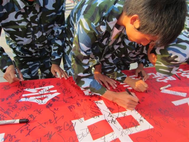 清晨,我系400余名新生在团总支的安排下参加了学院“努力学习,振兴中华”的升旗仪式,学生干部和新生们纷纷在“勿忘国耻,理性爱国,努力学习,振兴中华”条幅上踊跃签名。