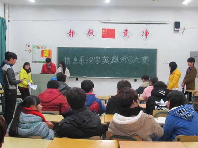 2013年12月27日中午,信息工程系召开了“中国梦同窗情”系列活动颁奖典礼,本次系列活动从策划宣传到举办历时一个月,由系学生会精心打造,以中国梦为主题,下设五个大学生喜闻乐见的子活动,分别是:凝聚正能量接力中国梦拔河比赛、中国梦宿舍情比赛、汉字英雄之听写大赛、汉字英雄之书法大赛和中国梦诗歌朗诵比赛。本次比赛得到了同学们的热烈响应,大家在参与活动的同时将自己的梦和中国梦相结合,提高了团队协作、动手能力和综合素养。