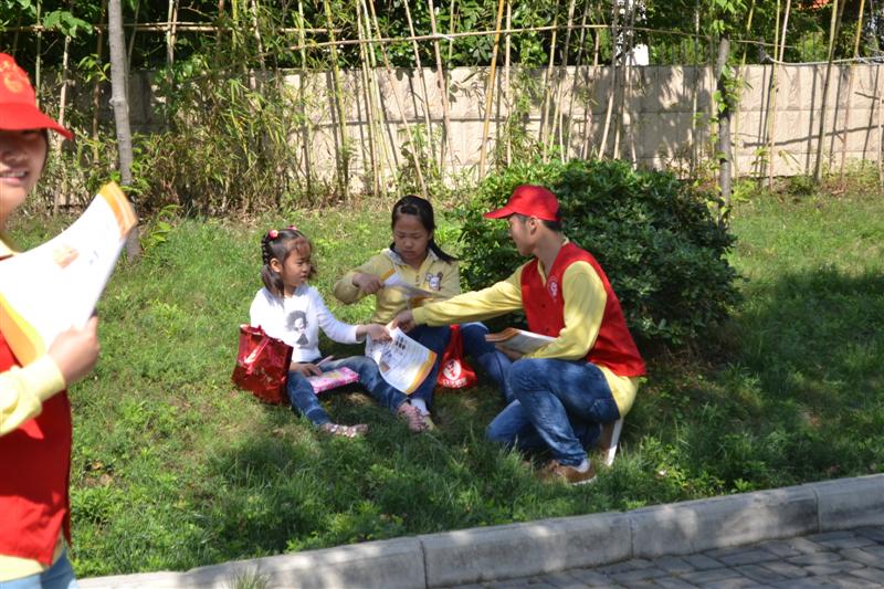 志愿者们顶着炎炎烈日,身披红色背心,面带微笑,深入银花西区、银花东区、湖心雅苑、盛世华庭等小区以及湖心路和清流公园周边,共计发放“防震避险知识”传单2600余份。