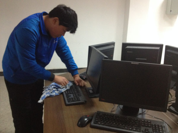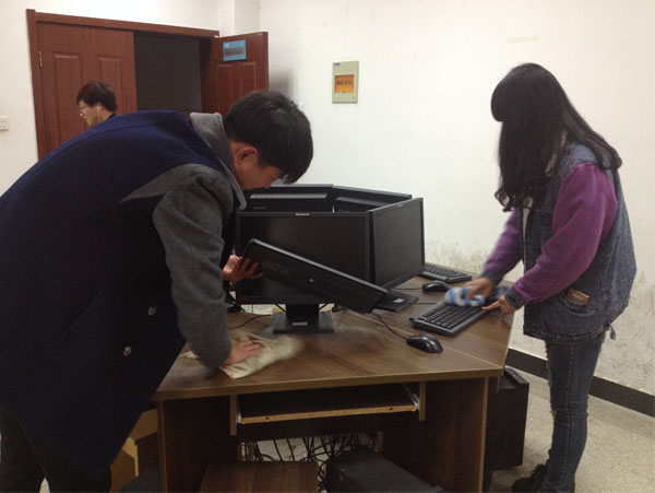 为了进一步弘扬“奉献、友爱、互助、进步”的志愿者精神,推动青年志愿服务事业有目标、有步骤的开展,继志愿者义务植树活动之后信息工程系团总支组织青年志愿者义务打扫综合楼机房。