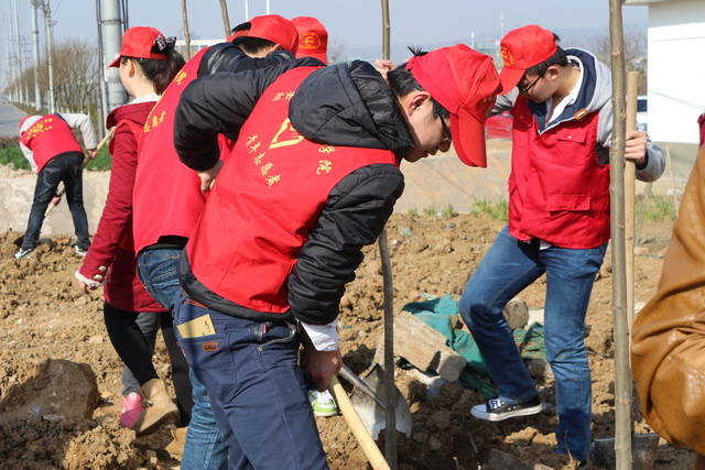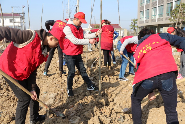 清晨7点,志愿者们早早在宿舍楼下集合向目的地出发,团总支书记杨老师也赶到现场,和同学们一同植树造林。春日阳光下,植树现场呈现一片忙碌的景象:志愿者们干劲高涨,还有市民带着小朋友一起加入了植树的行列。