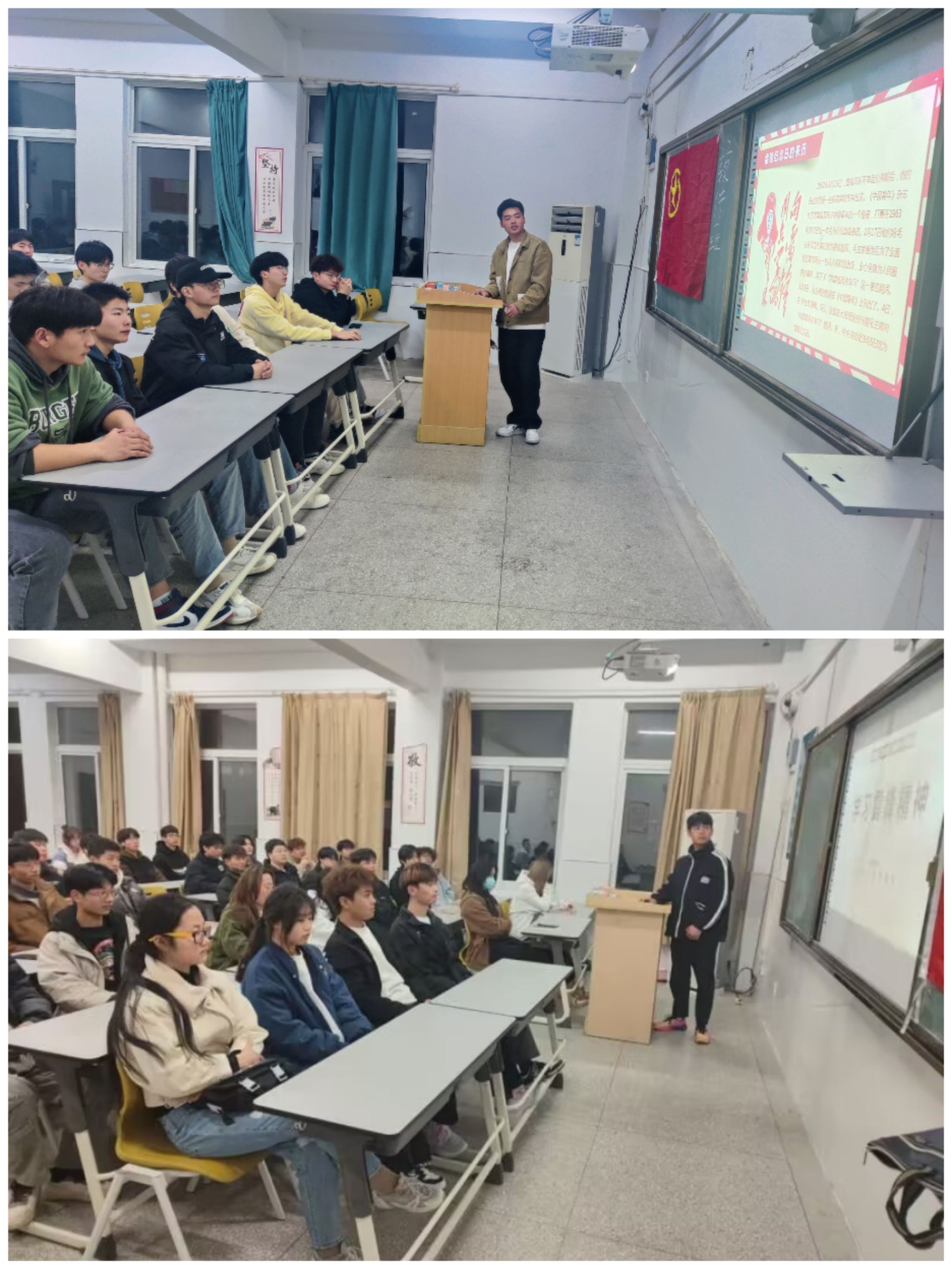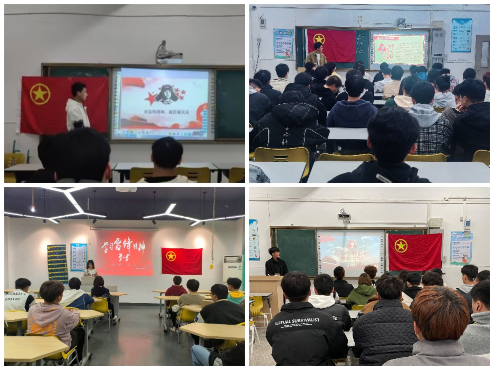 团日活动中,同学们齐唱团歌,在各班团支书的带领下通过理论学习、演讲、视频播放、心得分享等多种方式,认真学习了习近平总书记对深入开展学雷锋活动作出的重要指示精神和关于志愿服务的重要论述,通过一些故事表现雷锋的先进思想,阐述了雷锋精神的意义,呼吁大家传承雷锋精神。