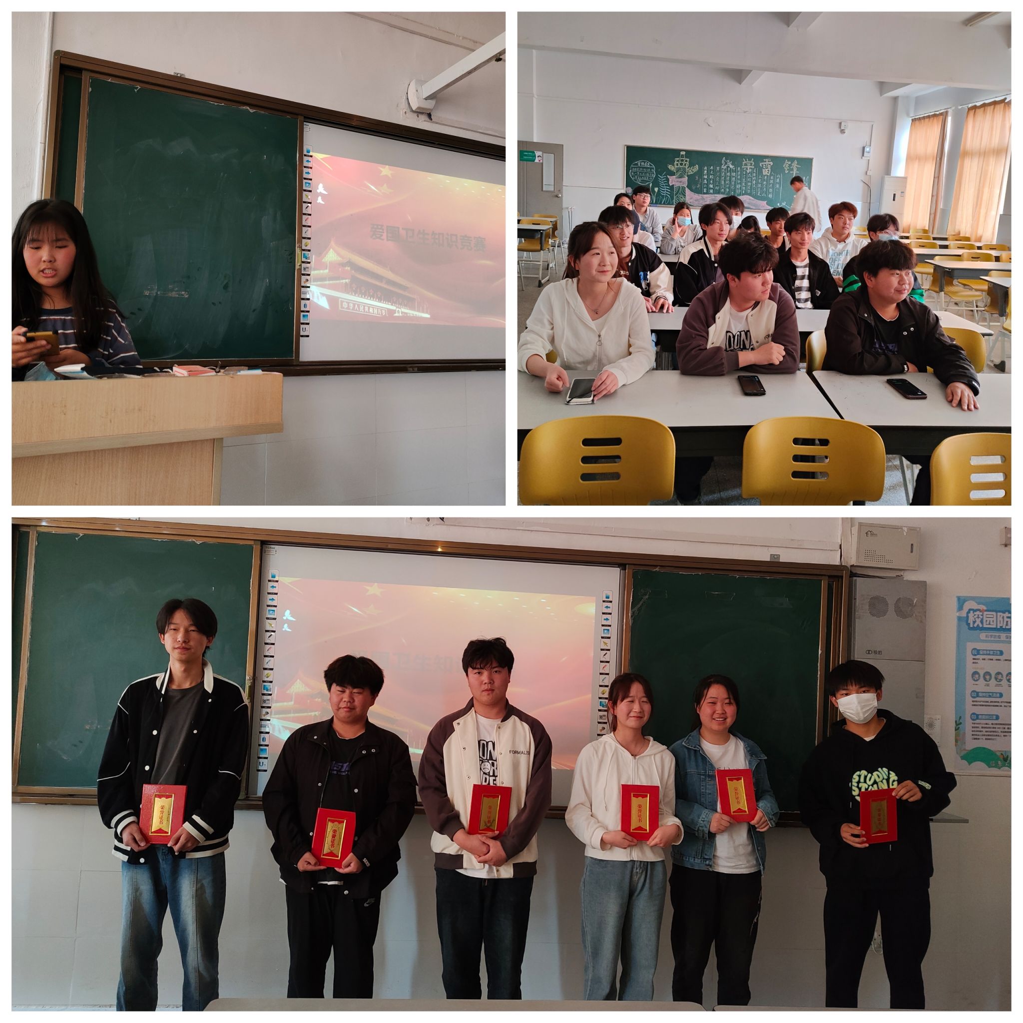 一是爱国卫生知识竞赛活动。活动以现场举手抢答的方式开展,题目围绕爱国卫生、健康教育、个人卫生习惯、大众科普知识等主题,同学们积极抢答,最后根据答题次数和正确率计分评选出奖项,让同学们在抢答中加深对爱国卫生月的认识。